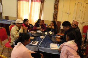 During the meeting, Social Protection Volunteers discussed community-level issues and the processes used to address and resolve these issues. The Rajapur Municipality Judicial Facilitator shared updates on the total number of cases raised during FY 2082/2083 (8 cases), including cases resolved (6), pending cases (2), and the reasons behind the unresolved cases.
