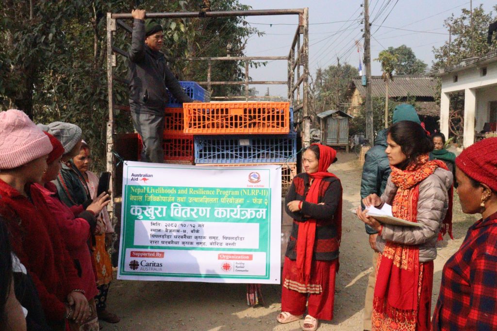 As part of efforts to enhance household nutrition and generate small income opportunities, 314 chicks were distributed on 26 January to 50 members of the Pipal Dadha and Rara Homestead Farmers Groups of Baijanath Rural Municipality Ward No. 4, Banke in the presence of the Ward Chairperson. Similarly, improved breed chickens were provided to homestead farmers of Panchpuri Municipality Ward No. 5, Surkhet under the leadership of Ward Chairperson, supporting nutrition and small-scale poultry-based income generation.