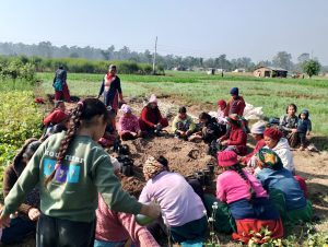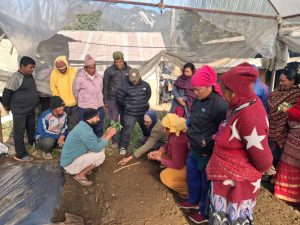 Kitchen gardening demonstrations and nursery development activities were conducted from 7 to 23 January 2026 for farmers in Banke, Surkhet, and Lalitpur. In Banke, on 10 January, the Chisapani Suryoday and Rara Home Garden Farmers Groups prepared nurseries for cucurbit vegetables such as bitter gourd, pumpkin, and ridge gourd, followed by similar activities for the Pipal Dadha and Chameli IPM Farmers Groups on 13 January. Nursery preparation for cucurbit vegetables was also carried out on 23 January at Bhawani IPM Farmers’ School, attended by 28 participants. In Lalitpur (Bagmati-2, Malta), on 7 and 9 January, the Shubhekshya Homestead Group received training on Bokashi manure, Jholmol, and effective microorganisms (EM), along with seeds of cauliflower, cabbage, and broccoli, while the Kalidevi Homestead Group received training on field preparation, seeds of cauliflower, cabbage, broccoli, and tomato, and a special class on EM-2 preparation. On 14 January, the Shubhekshya group received special sessions on mushroom cultivation with mushroom seed support, and on 16 January, they prepared Bokashi manure. In Surkhet, during monthly meetings, home garden groups conducted soil treatment, seedbed preparation, seed distribution, and crop monitoring. These activities strengthened farmers’ skills, improved vegetable production, and promoted sustainable, climate-friendly home gardening practices across all districts.